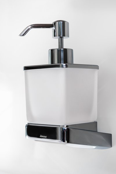 Крепление на дюбелях и крепежной металлической зажимной пластине. Держатель снабжен с внутренней стороны пластиковым кольцом для мягкой посадки стеклянного дозатора. Для очистки внешней поверхности рекомендуем использовать средство RAVAK Cleaner Chrome.