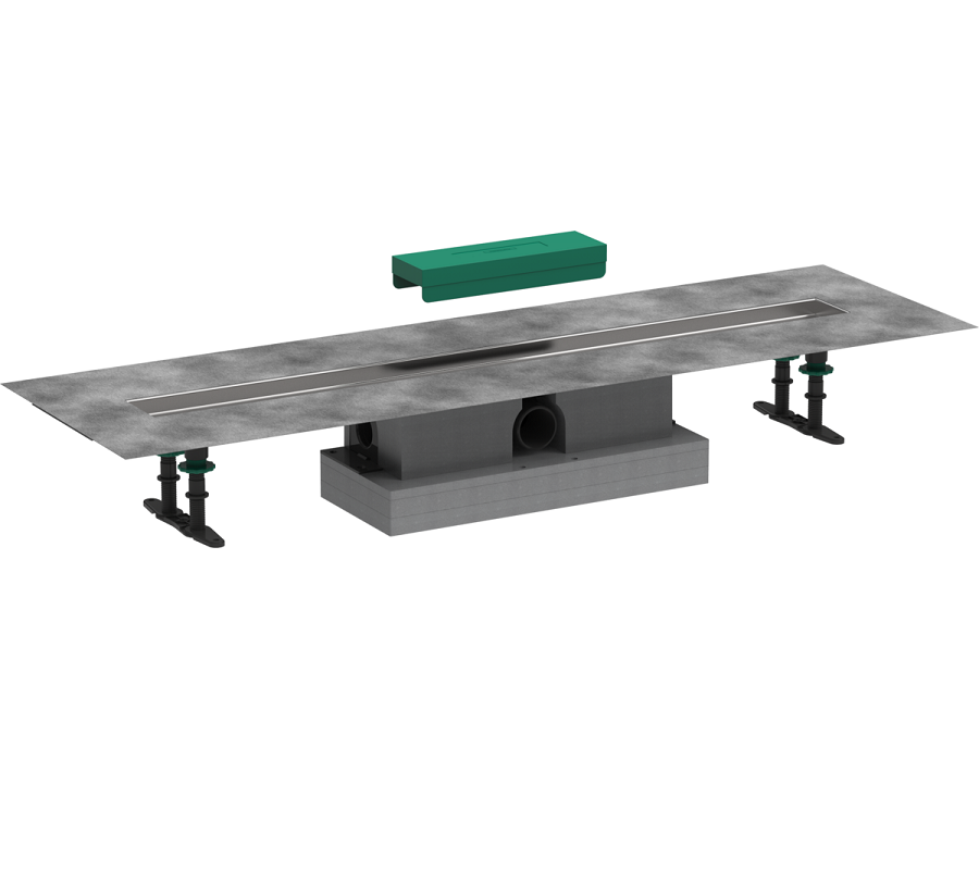 • состоит из: монтажный набор, скрытая часть, предустановленная уплотнительная мембрана, сифон, панель для регулировки высоты