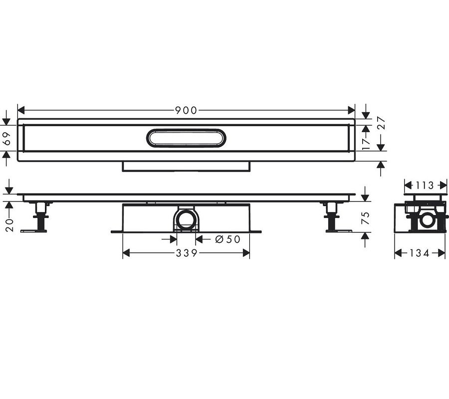 Дренажный канал Hansgrohe uBox universal, 90 см, установка вровень с полом, 56019180 Дренажный канал Hansgrohe uBox universal, 90 см, установка вровень с полом, 56019180