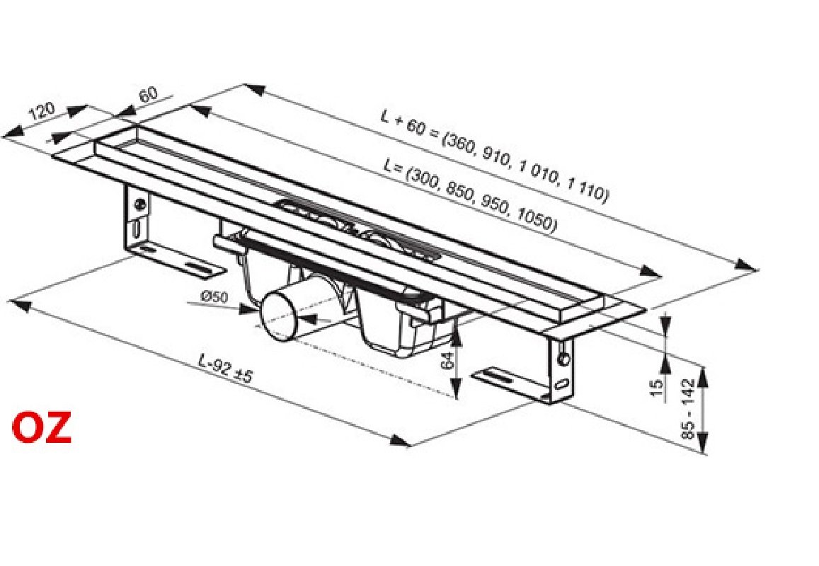 В случае комбинации душевой кабины с дренажным каналом необходимо учитывать размеры отдельных изделий. Точные размеры душевых кабин можно найти на отдельных продуктах в техническом паспорте.
