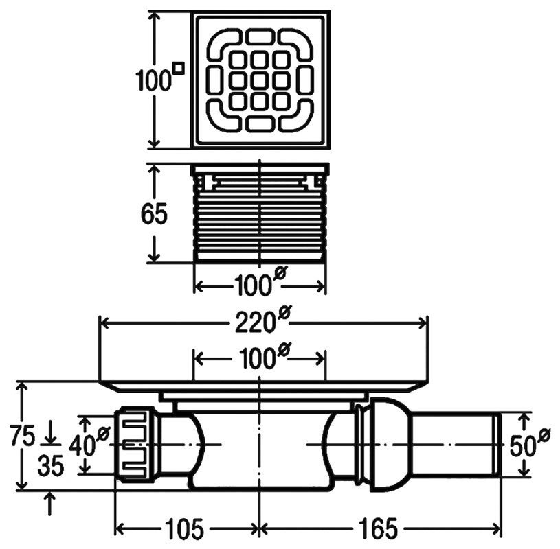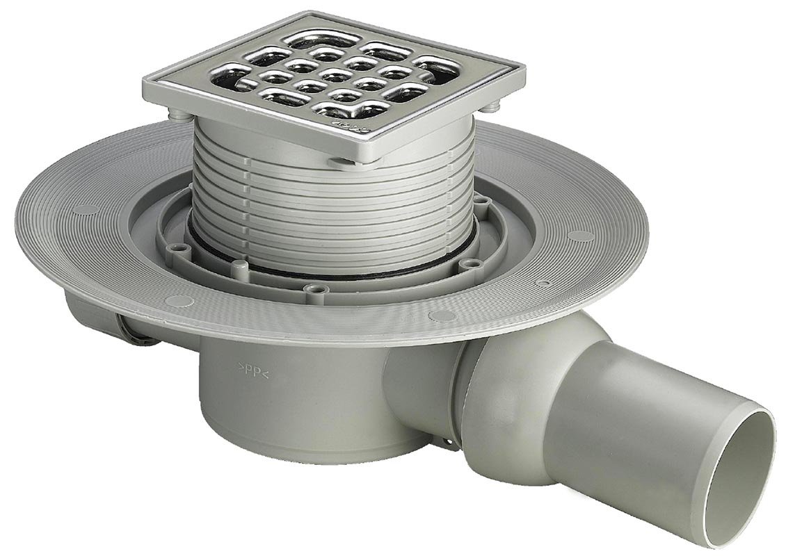 • c пoвopaчивaющeйcя и peгyлиpyeмoй пo выcoтe нacaдкoй 100 х 100 мм c peшeткoй из нepжaвeйки 94 x 94 мм, c пpямым шapниpным oтвoдoм