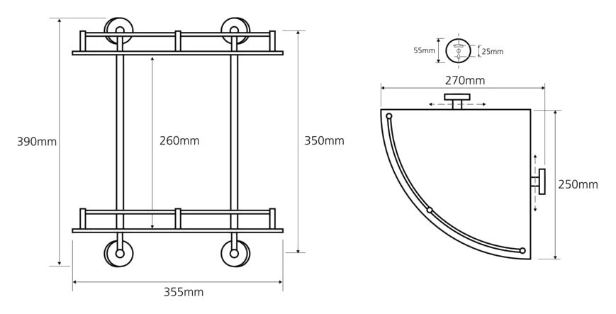 Двойная угловая стеклянная полка Bemeta