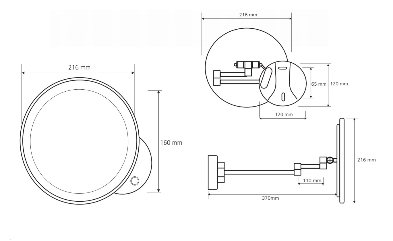• Диаметр зеркала: 16 см