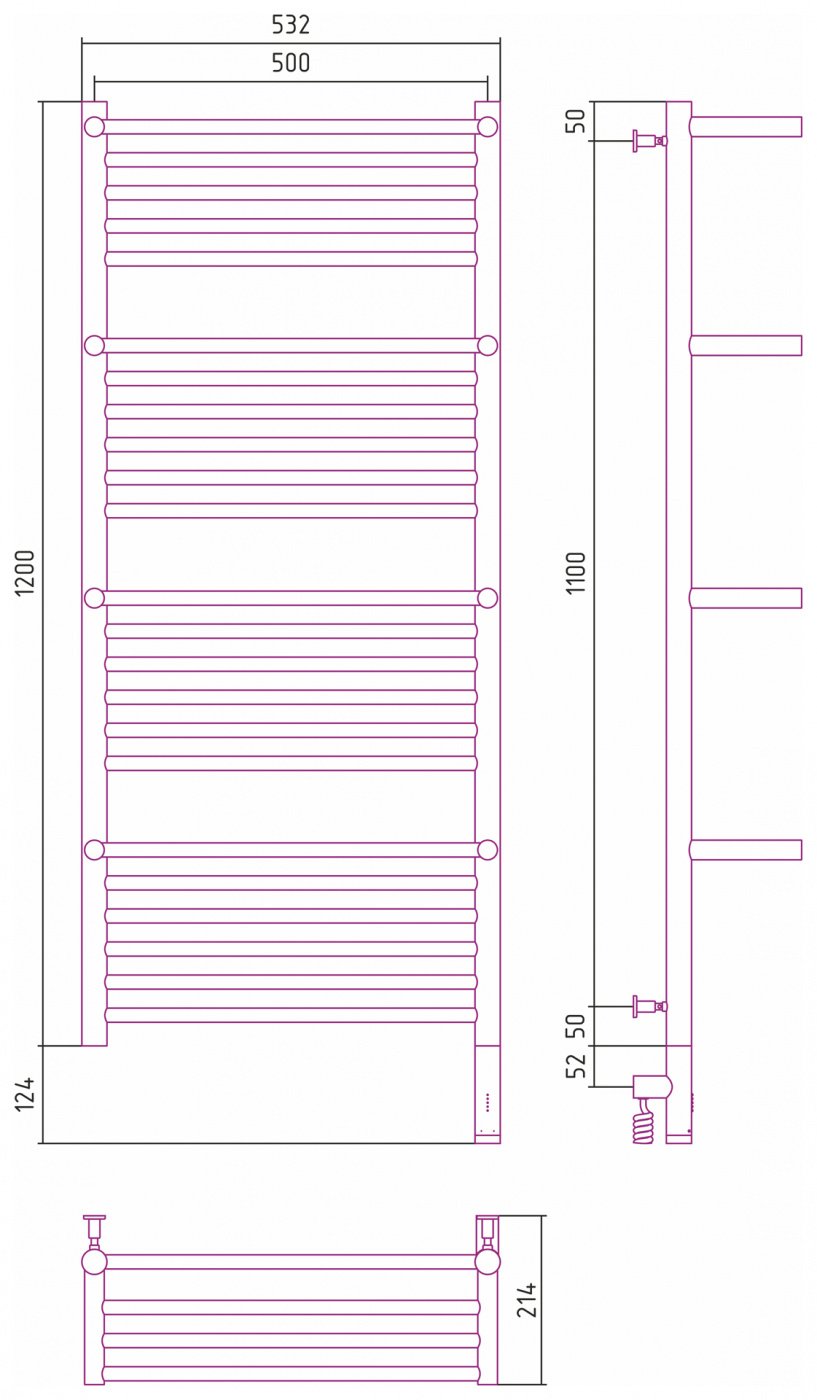 Полотенцесушитель электрический Сунержа Богема 3.0 1200 x 500 с 4 полками, ширина 53.2 см, высота 132.4 см, без покрытия, L/R Полотенцесушитель электрический Сунержа Богема 3.0 1200 x 500 с 4 полками, ширина 53.2 см, высота 132.4 см, без покрытия, L/R
