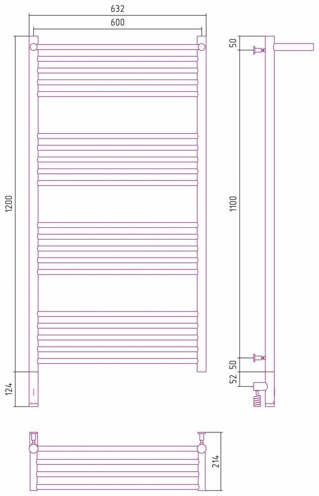 Полотенцесушитель электрический Сунержа Богема 3.0 1200 x 600 с полкой, ширина 63.2 см, высота 132.4 см, без покрытия, L/R