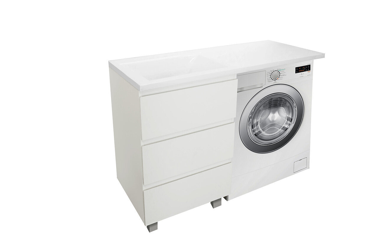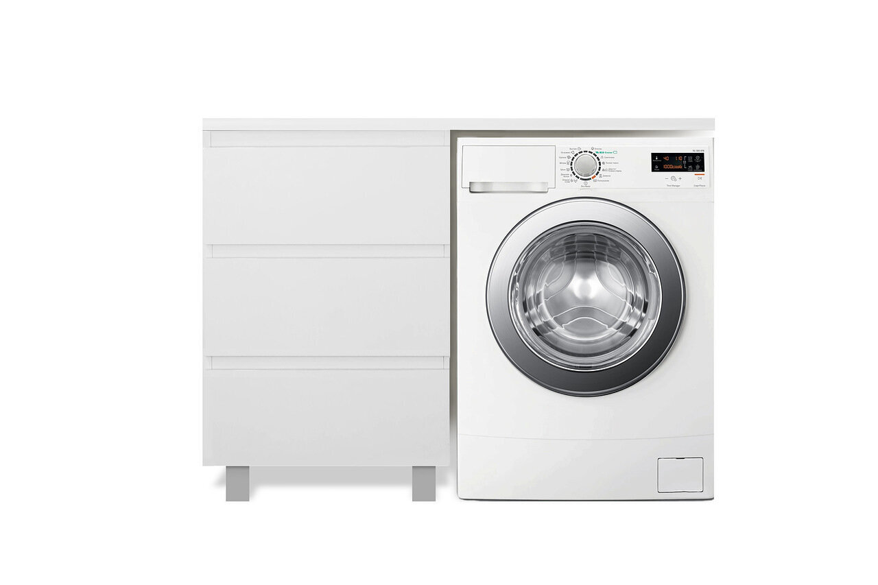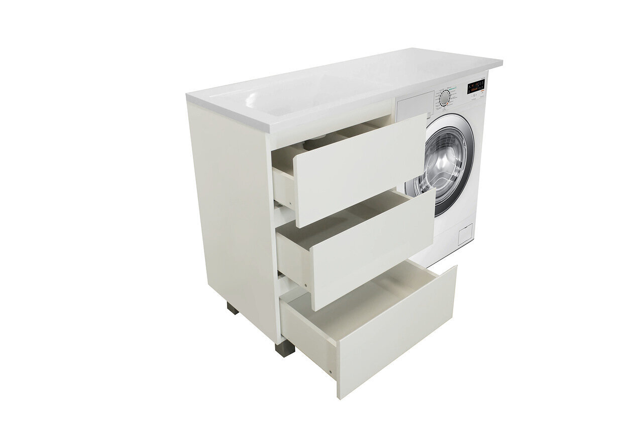Приоритетом в выборе тумбы с раковиной является площадь ванной комнаты. Функциональная тумба с тремя ящиками решит вопрос для большинства покупателей. Тумба укомплектована раковиной из литьевого мрамора с удобной чашей, стиральная машина устанавливается под столешницей Три ящика позволят распределить как крупные, так и мелкие вещи.