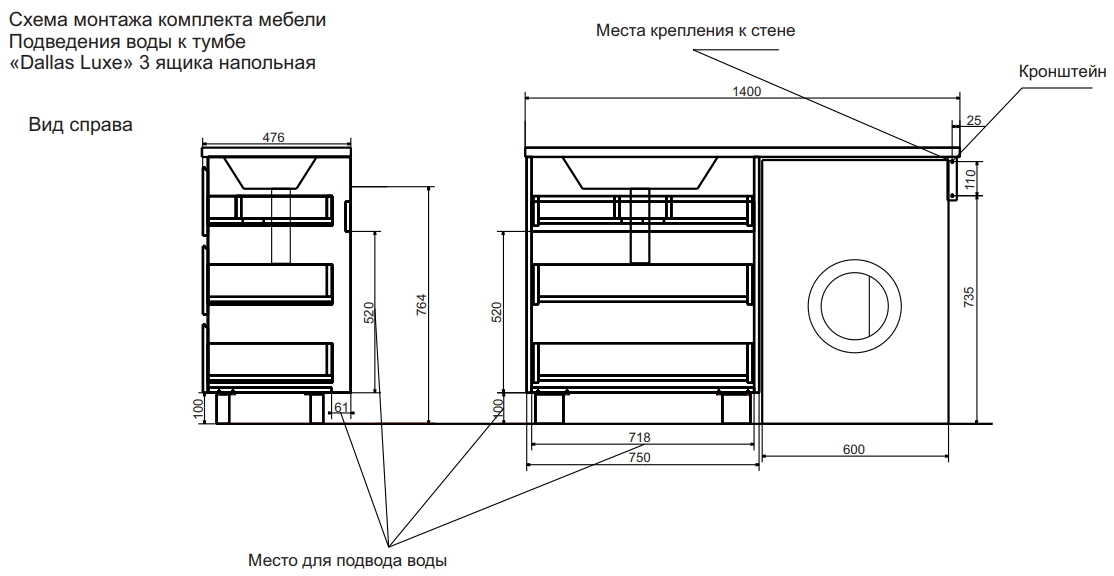 Тумба с раковиной Dallas Luxe 140 ФР-00002922 (чаша слева, крыло справа), ФР-00002912 (чаша справа, крыло слева):