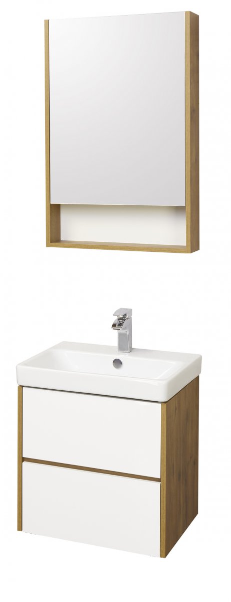 Зеркальный шкаф Акватон Сканди 55 см 1A252102SDZ90 подвесной, белый/дуб рустикальный