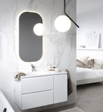 Зеркало со светодиодной подсветкой, сенсорным выключателем, регулятором освещенности и обогревом