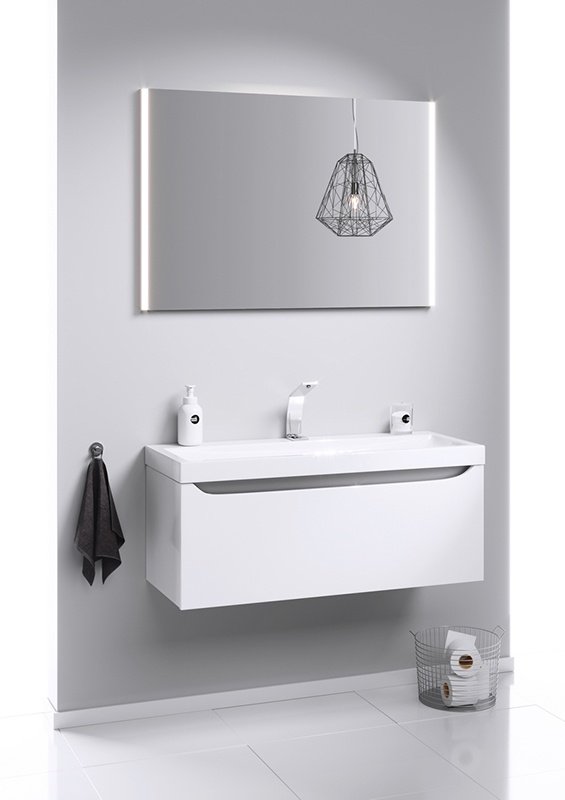 AQWELLA – зеркало оснащено регулятором освещенности. Для настройки удобного для Вас уровня освещенности необходимо коснуться датчика в нижней части зеркала и на некоторое время задержать палец на нем.